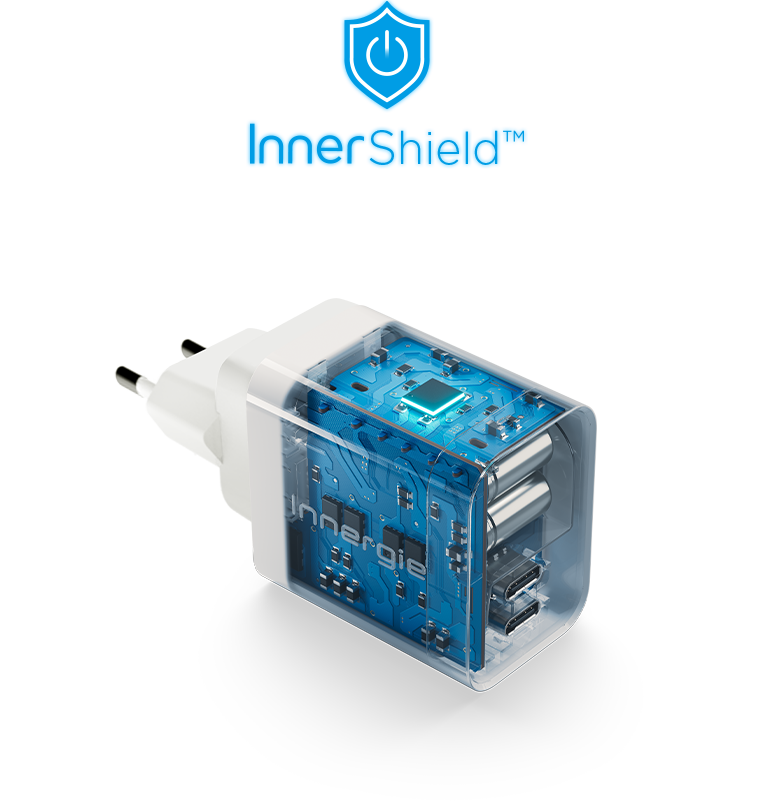 Equipped with the comprehensive power supply protection technology in the industry. Innergie chargers feature five layers of protection, including Over Current Protection, Over Voltage Protection, Over Temperature Protection, Over Power Protection and Short Circuit Protection.
