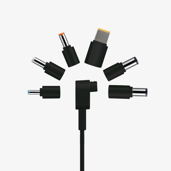 Smaller than the original adapter, with included charging cable and interchangable laptop tips to power up your laptop anywhere.