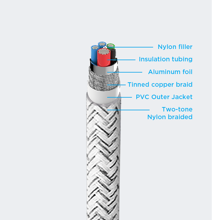 Built-in E-Marker IC boosts PD fast charge up to 5A 100W.