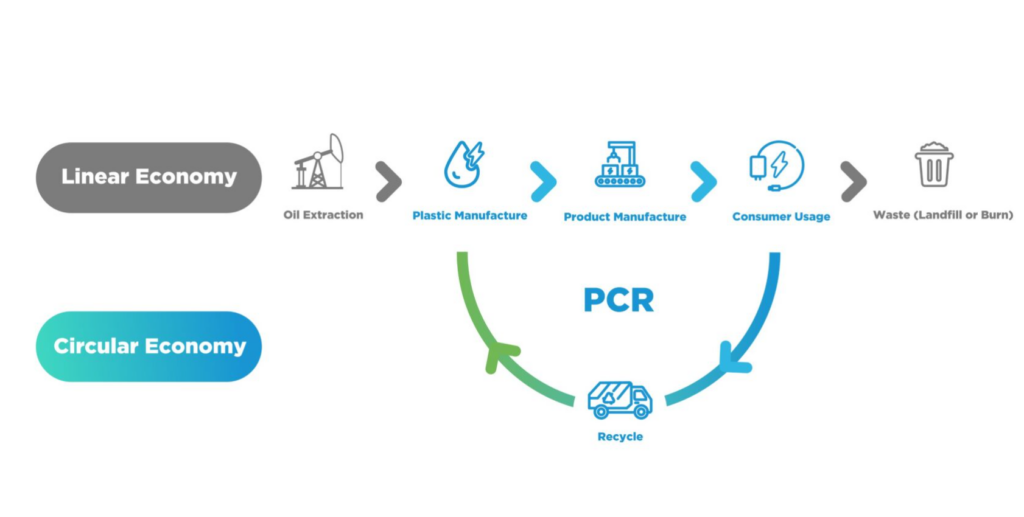 PCR stands for Post Consumer Recycled, meaning the plastic comes from plastic that has been recycled after consumer use. For example, water bottles, beverage cups, food containers, CDs, electronic product components, and household appliance casings. Recycled plastic is mixed with virgin plastic based on the product’s requirements, such as color and safety, to create new plastic products – of course, the quality of the PCR plastic needs to be assured and certified.