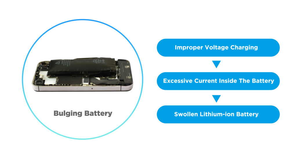 When the phone battery is completely discharged, its voltage is at an extremely low level. If the charger does not correctly control the voltage, it can lead to a momentary surge in large current. This situation can cause a delay in the lithium-ion reaction, resulting in the formation of solid-state crystals and leading to a swollen battery.