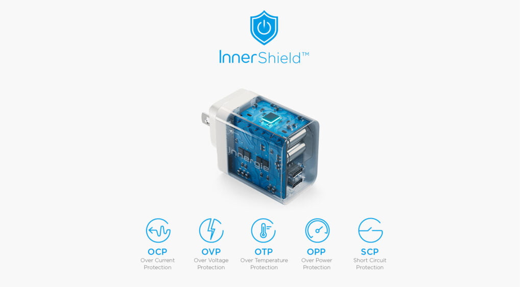 Innergie’s full range of chargers not only complies with national safety regulations but also surpasses more stringent standards with 600 hours of Delta internal testing. It incorporates the unique InnerShield™ five safety mechanisms, including over-voltage protection, over-current protection, and overheating protection, ensuring the safety of both the charging device and the user.