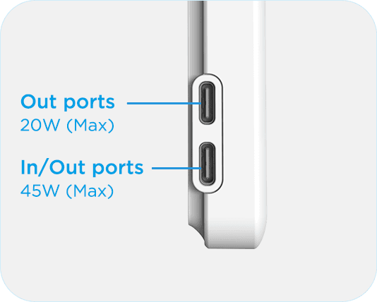 *When charging three devices, 30W output is prioritized through the USB-C1 In/Out port, 10W for USB-C2 Out port, and 5W for wireless power.
