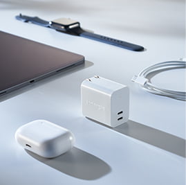 30W Dual USB-C Premium PD Charger Auto detects and calculates the power needed for your device.