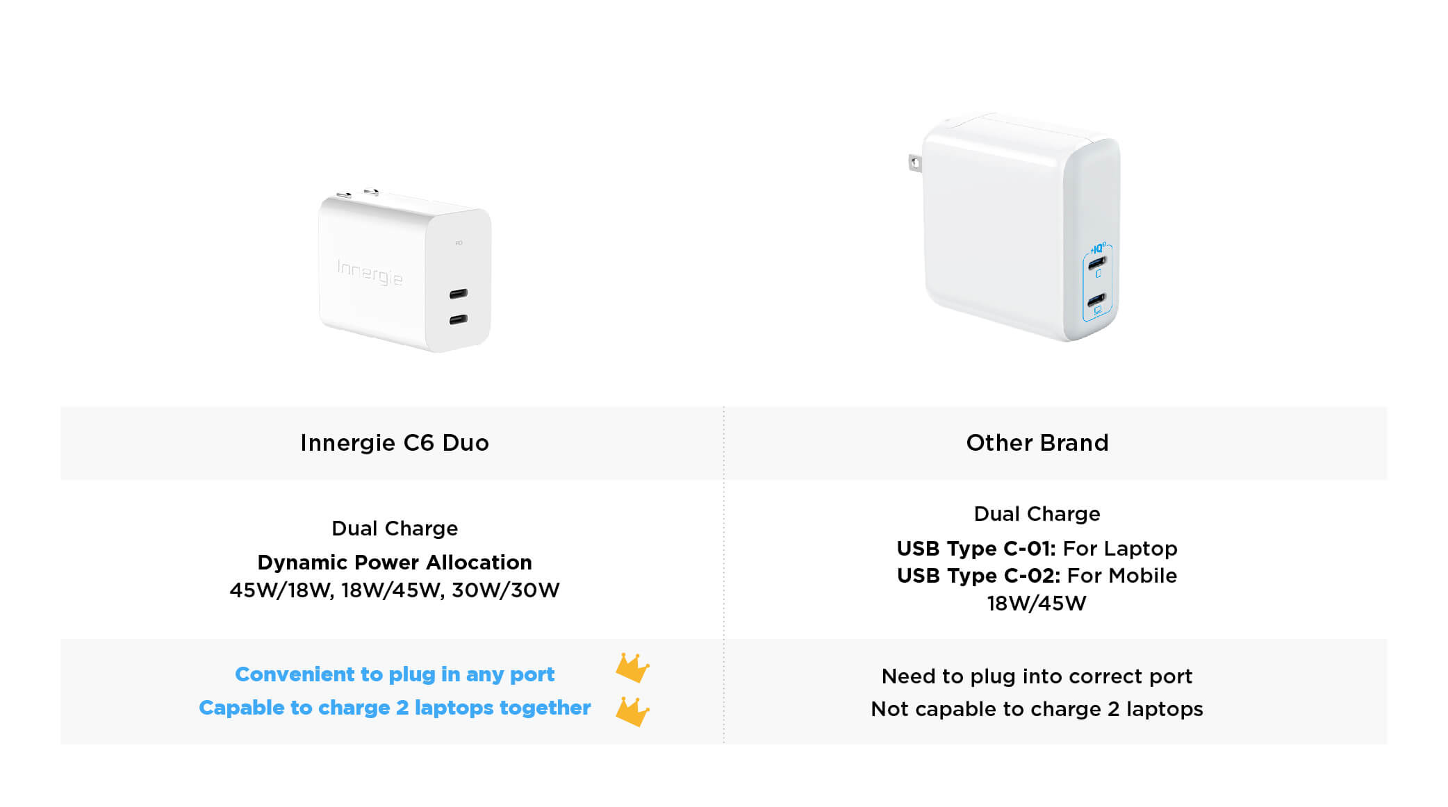 Apa yang membedakan Innergie C6 Duo  dengan Pengisi Daya USB-C Ganda 60W lainnya?