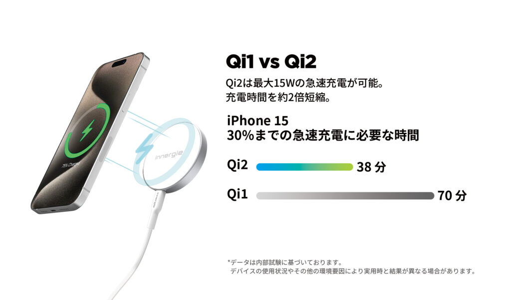 Innergieの最新マグネット式ワイヤレス充電器およびマグネット式モバイルバッテリーは、Qi2規格を採用しており、WPCの公式認証を受けています。Apple iOSユーザーも、Samsung、HuaweiなどのAndroidユーザーも、スマートフォンがQi2に対応していれば、最大15Wのワイヤレス充電を楽しむことができます!
