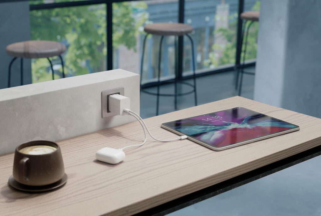 自宅でも、オフィスでも、外出先でも、C3 Duoを使えばiPhone 13/14、タブレット、Airpod、13インチMacBook AirをC3 Duoだけで充電することができます。