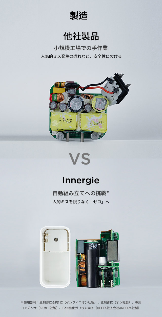 Innergieの優れた電力技術は、世界で最も優れたエネルギー設計を行う研究開発チームによって誕生しました。 Innergieは、電力技術の世界的リーダーであるDelta Electronicsのブランドの1つです。 電力管理技術における50年以上の経験に支えられ、Innergieは優れた品質と安全性の高い電力を提供するため、 高品質の材料と厳しい生産管理の元、生産されています。