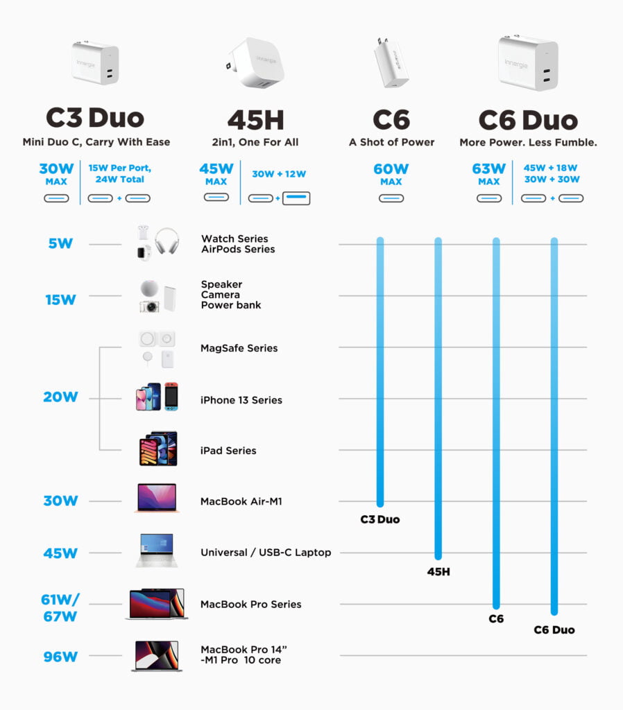 Apple’s newest iPhone comes with no charging adapter in the box. This overview will help you identify a USB power adapter for your Apple Product.