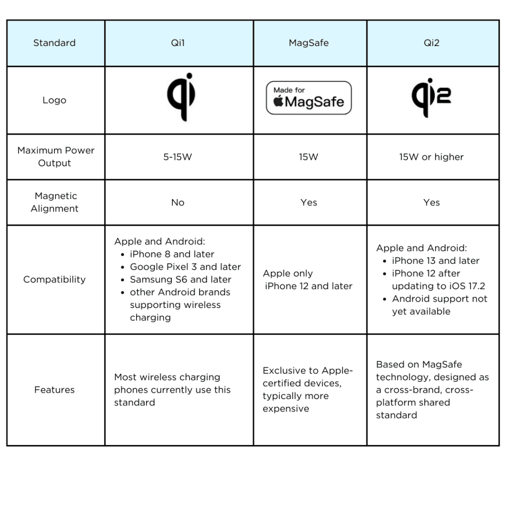 Qi vs. Qi2 vs. MagSafe