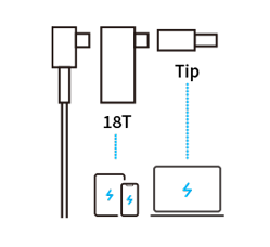 When an adapter with a 18W attached is connected to your laptop, you can have both the laptop and mobile device charging at the same time. When the laptop tip is not connected, the USB-C port can support power for your laptop, gaming devices and more mobile devices.