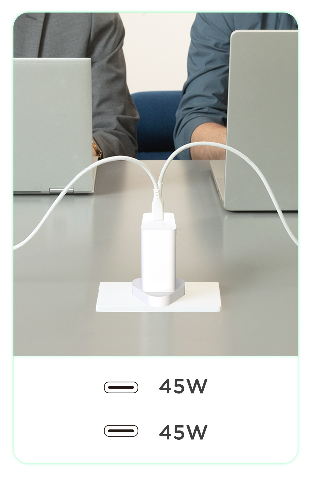 Auto Device Detection – Dual USB-C with Dynamic Smart Allocation. Optimize power to both upper and lower port.