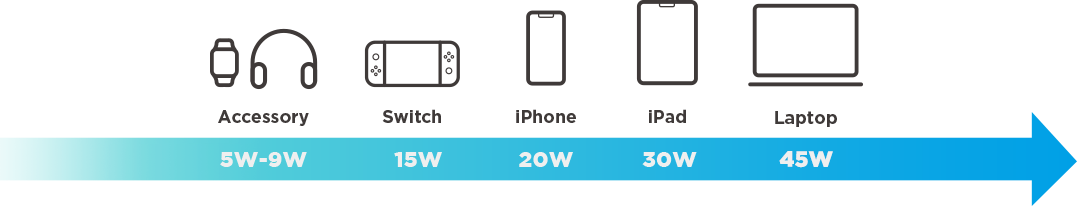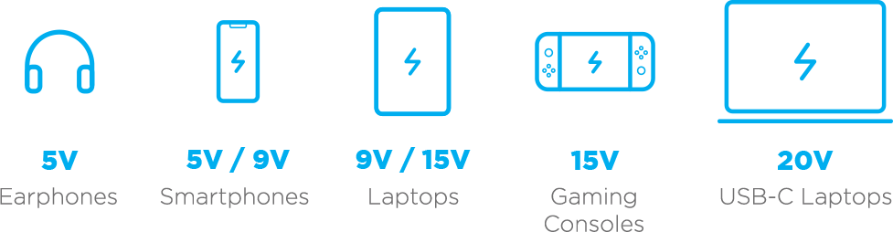 Revolutionary charging technology evolution, with five variable voltages: 5V, 9V, 12V, 15V, and 20V, satisfying the charging needs of various USB-C devices such as smartphones, tablets, and gaming consoles at once.