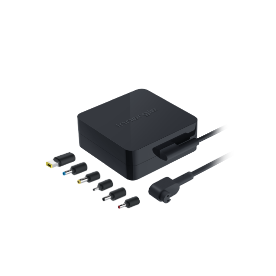 Smaller than the original adapter, with included charging cable and interchangable laptop tips to power up your laptop anywhere.