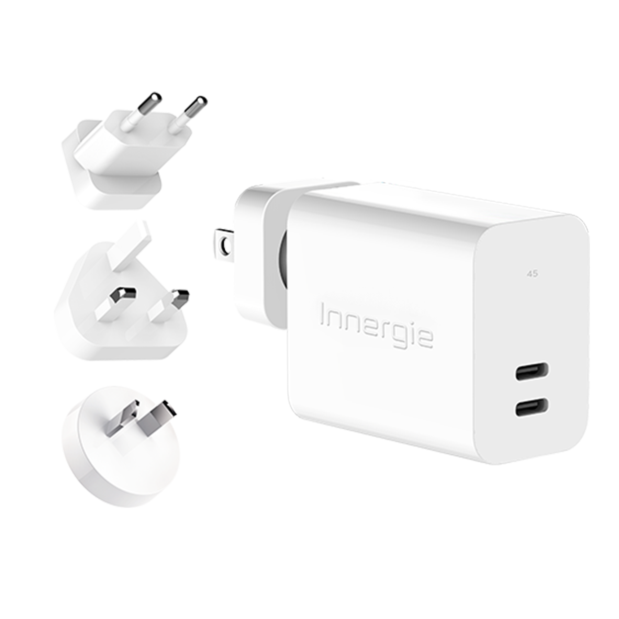 Fit in Innergie Int and US adapters, let you charge around the world.