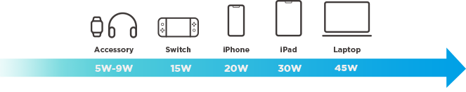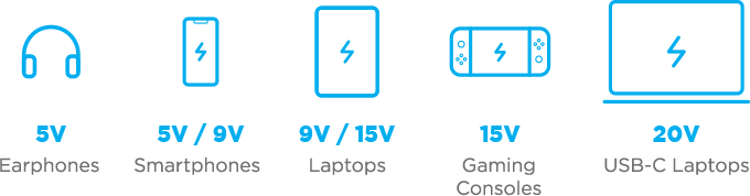Revolutionary charging technology evolution, with five variable voltages: 5V, 9V, 12V, 15V, and 20V, satisfying the charging needs of various USB-C devices such as smartphones, tablets, and gaming consoles at once.