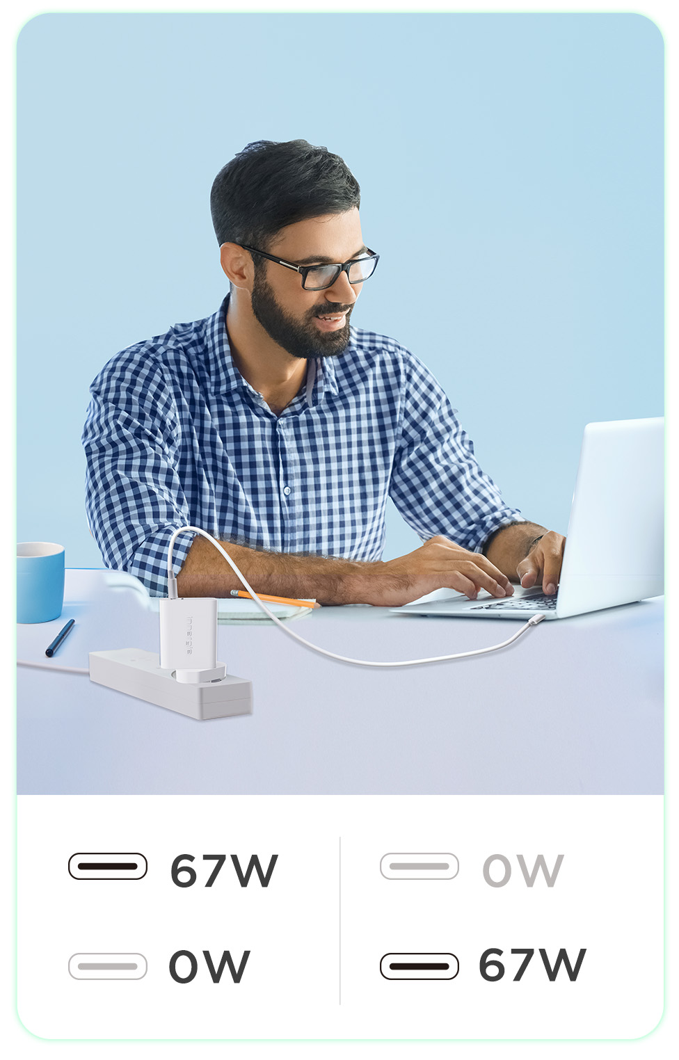 • 67W dual USB-C (Type-C) ports, fast charge laptop and smartphone at once.