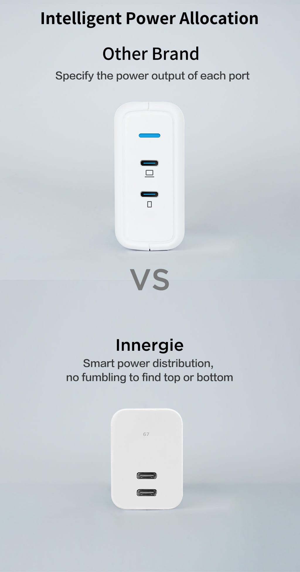 • Unique Innergie 3 Fast Charge Modes. Allocate power at highest efficiency.