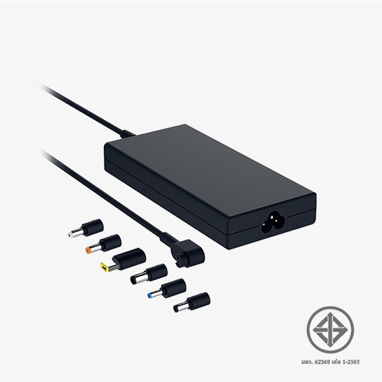 อะแดปเตอร์สำหรับโน้ตบุ๊กสากลมาพร้อมหัวต่อ 6 แบบ ที่สามารถใช้งานได้กับโน้ตบุ๊กส่วนใหญ่ และมีโปรแกรมหัวต่อเพื่อขอรับหัวต่อเพิ่มเติมให้เหมาะกับโน้ตบุ๊กของคุณ (Acer, ASUS, Alienware, Dell, HP, Lenovo, MSI)
