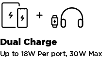 ชาร์จเร็วได้ทุกอุปกรณ์พร้อมกัน 2 เครื่องอย่างแท้จริง ด้วยพอร์ต USB-C และ USB-A โดยพอร์ต USB-C รองรับการชาร์จทั้งแบบ PD และ QC 3.0