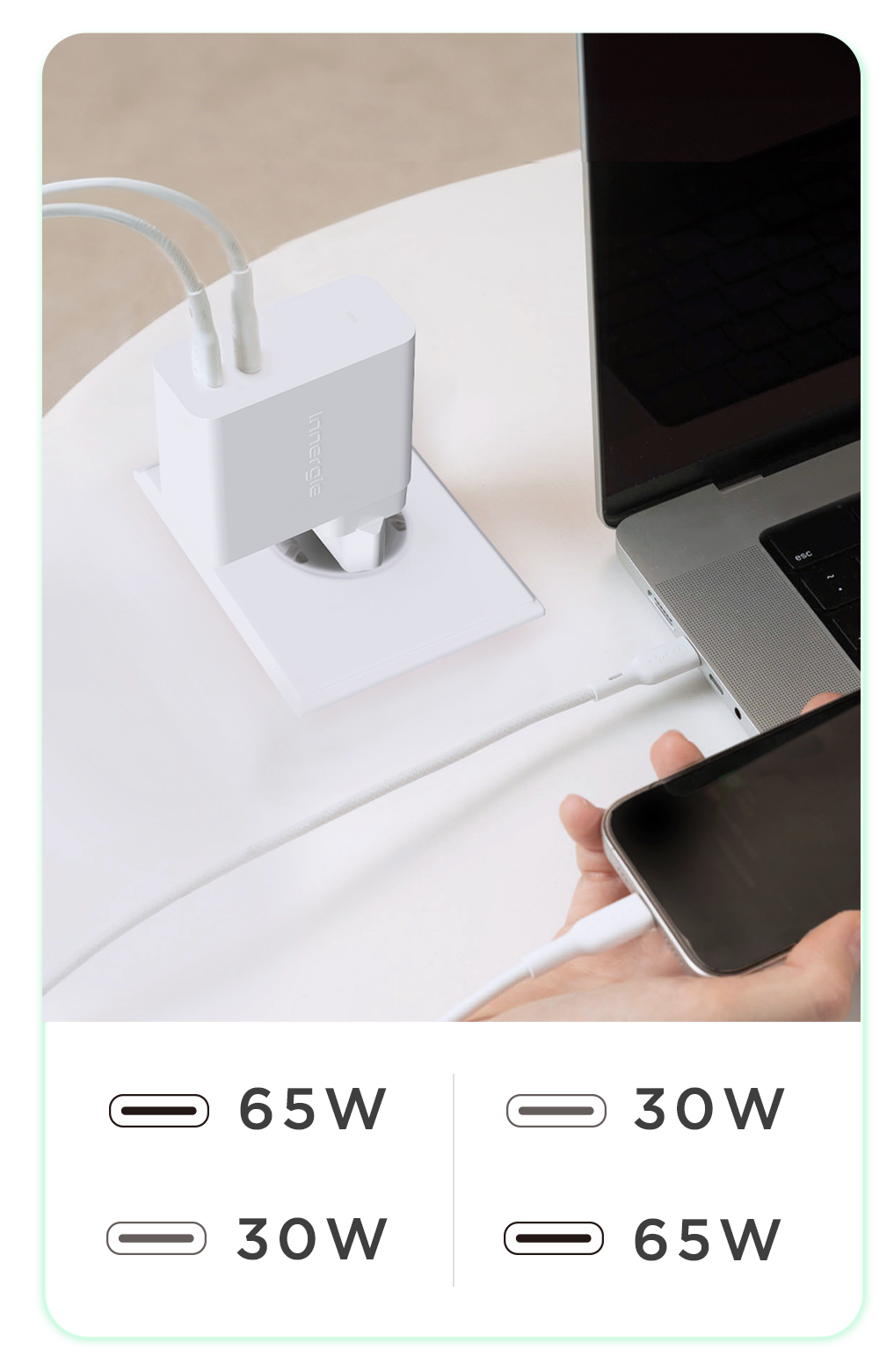 ด้วยค่าประสิทธิภาพการใช้พลังงานที่สูง ทำให้ลดการสูญเสียพลังงานในระหว่างการชาร์จอุปกรณ์ด้วย Innergie เพื่อลดภาระต่อสิ่งแวดล้อมของเราให้เหลือน้อยที่สุด