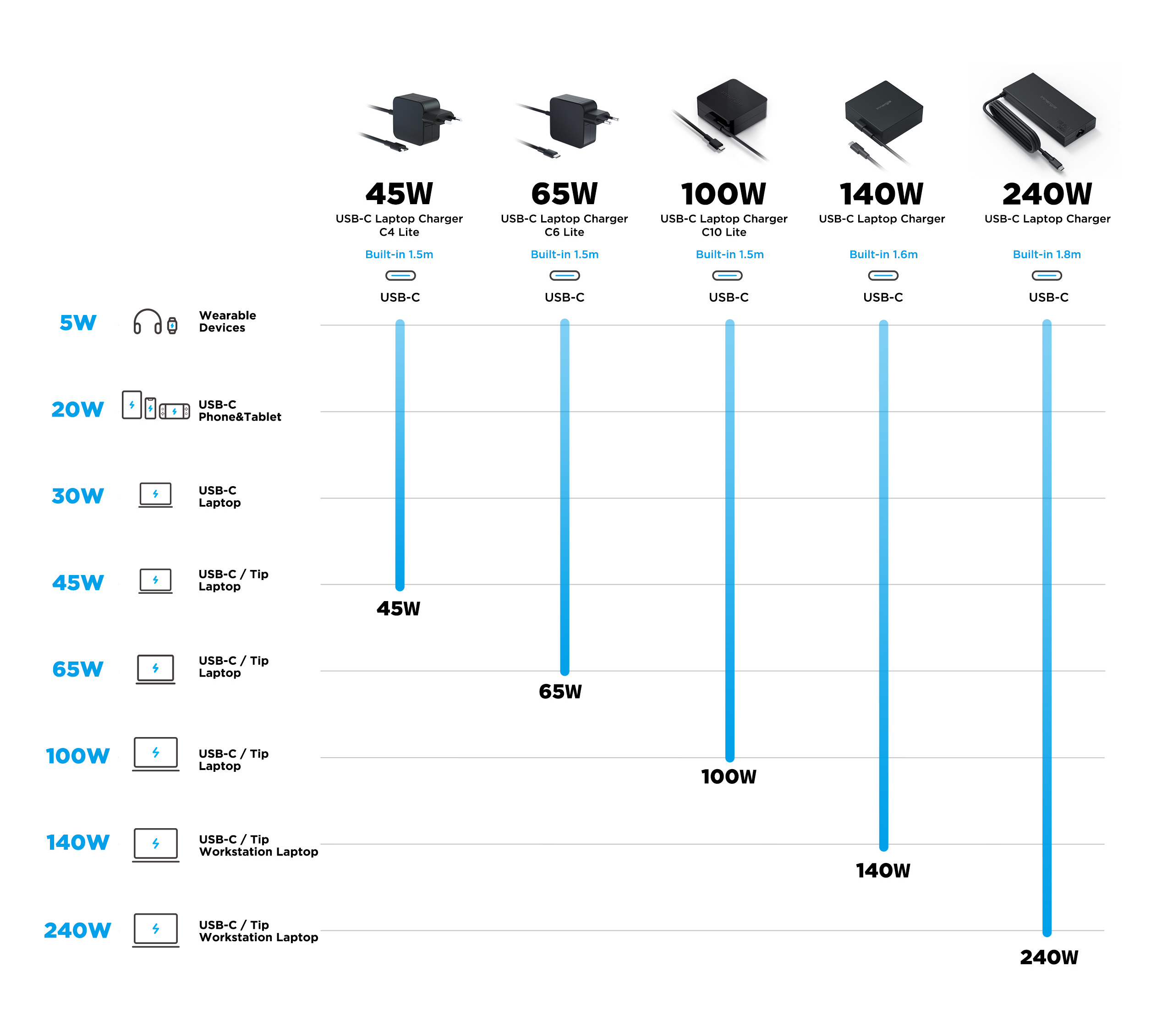 ขนาดเล็กกว่าอะแดปเตอร์ดั่งเดิม พร้อมสายชาร์จ USB-C ในตัว สำหรับชาร์จโน้ตบุ๊ก USB-C ได้ทุกที่