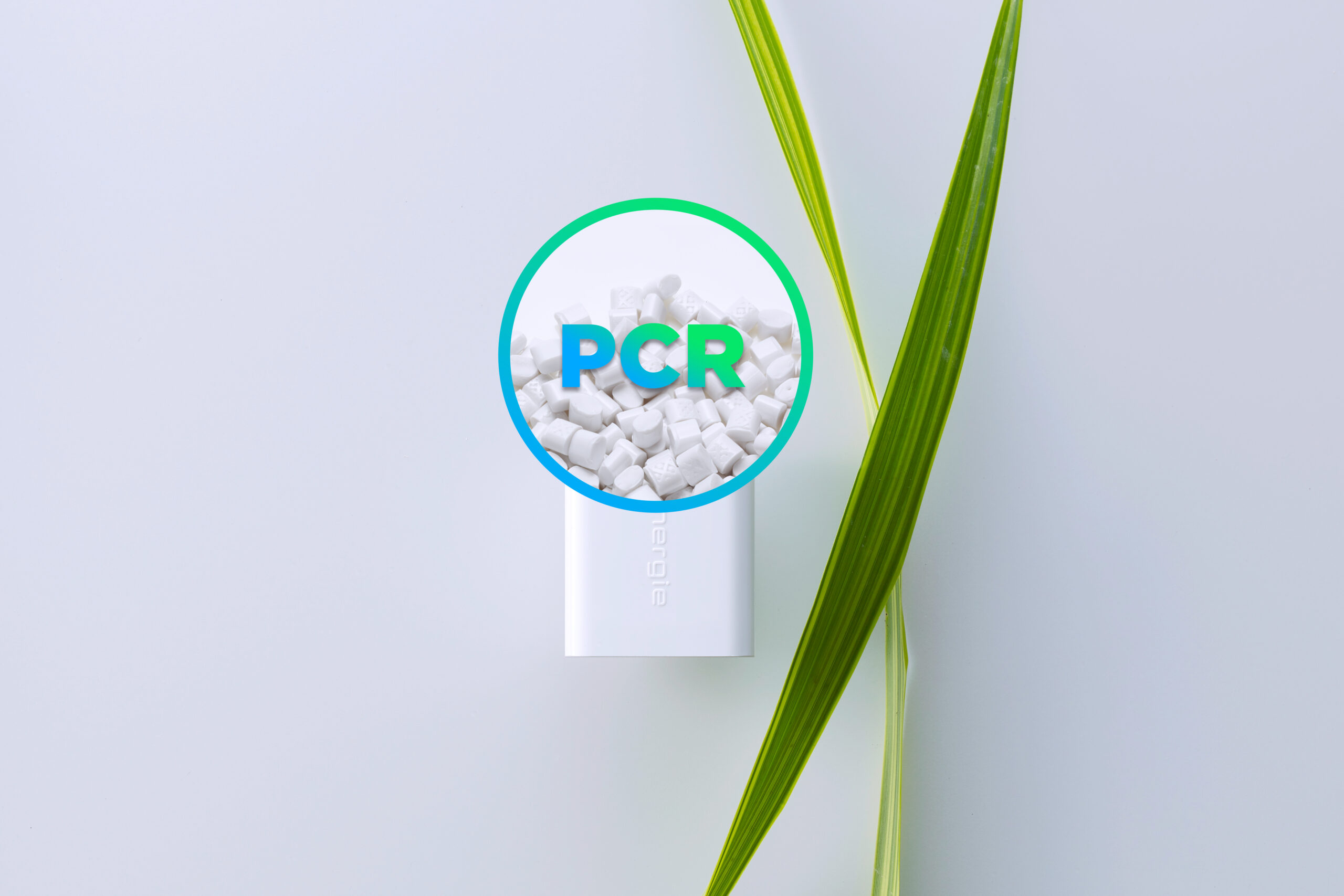 PCR 是 Post Consumer Recycled 的縮寫,意思為「消費後再生」,指塑膠的來源為「經過消費者使用後」再回收的,如:水壺、寶特瓶、飲料杯、餐盒、光碟片、電子產品零組件、家電外殼等等。經過回收後的塑膠,會依據產品的特性與需求,例如顏色、安全性,按比例混入原生塑膠,確認品質和功能與全新塑膠無異,再製造成新的塑膠品。