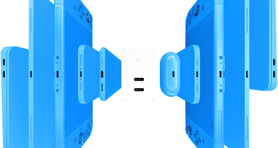 只要一顆萬用充電器,就能充飽手機、筆電、平板、遊戲機、耳機等。為生活減去繁雜、加上簡約