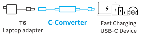 By 2026, all laptops will require USB-C as a charging surface in EU. Assisting consumer transit to USB-C era is Innergie’s sustainability commitment. C-Converter is to transform your T6 laptop adapter tip to USB-C in one CLICK! Catering to various needs.
